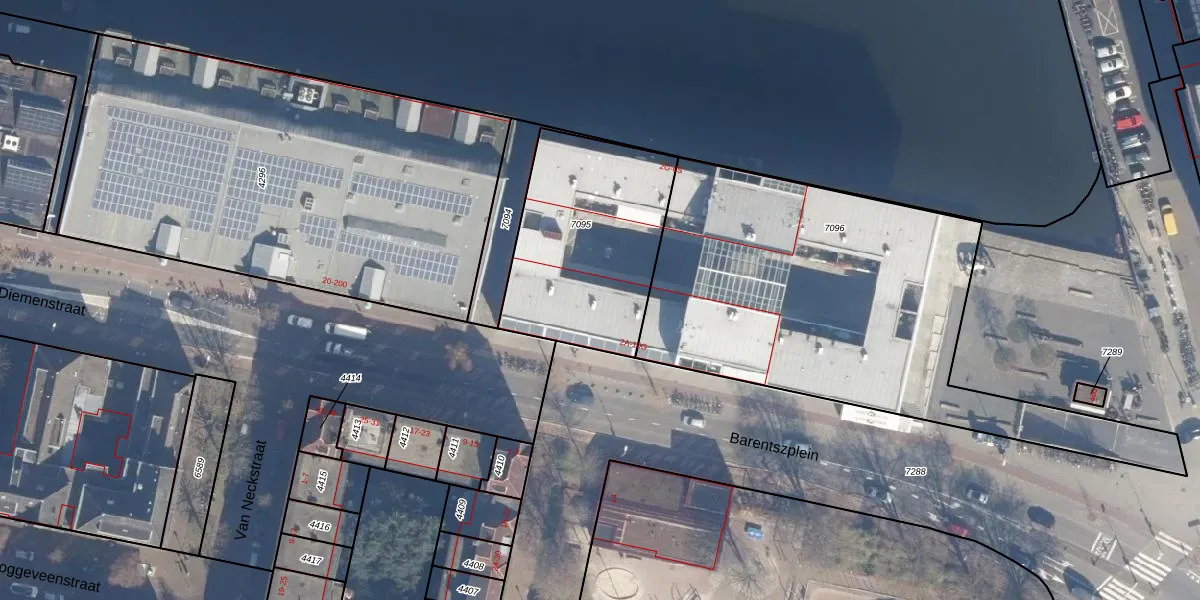 Barentszplein 8-V is gelegen op kadastraal perceel ASD09M7095. Deze kadastrale aanduiding is uniek en wordt gebruikt door het Kadaster om eigendomsrechten en andere zakelijke rechten vast te leggen. Het perceel maakt onderdeel uit van de kadastrale gemeente Amsterdam.