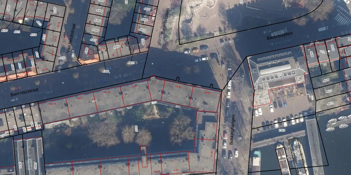 Barentszplein 97 is gelegen op kadastraal perceel ASD09M6015. Deze kadastrale aanduiding is uniek en wordt gebruikt door het Kadaster om eigendomsrechten en andere zakelijke rechten vast te leggen. Het perceel maakt onderdeel uit van de kadastrale gemeente Amsterdam.