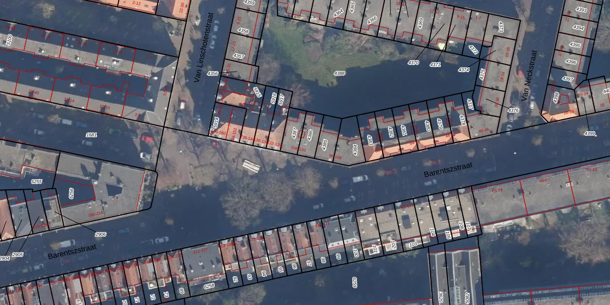 Barentszstraat 108 is gelegen op kadastraal perceel ASD09M4386. Deze kadastrale aanduiding is uniek en wordt gebruikt door het Kadaster om eigendomsrechten en andere zakelijke rechten vast te leggen. Het perceel maakt onderdeel uit van de kadastrale gemeente Amsterdam.
