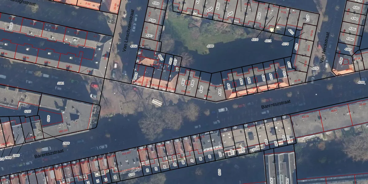 Het perceel waarop Barentszstraat 114 staat heeft een oppervlakte van 88 m². Dit is een klein perceel. De perceeloppervlakte wordt geregistreerd door het Kadaster. Gedetailleerde informatie over de maten van dit perceel kunt u vinden in het rapport Kadastrale kaart met maatvoering van Barentszstraat 114.