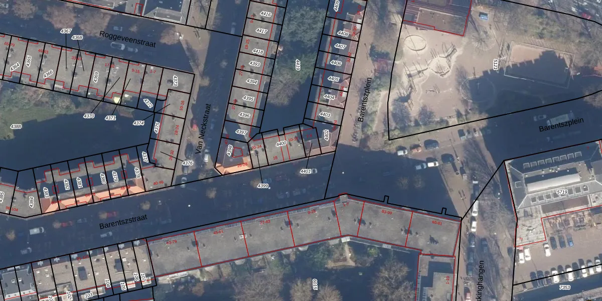 Barentszstraat 12 is gelegen op kadastraal perceel ASD09M4400. Deze kadastrale aanduiding is uniek en wordt gebruikt door het Kadaster om eigendomsrechten en andere zakelijke rechten vast te leggen. Het perceel maakt onderdeel uit van de kadastrale gemeente Amsterdam.
