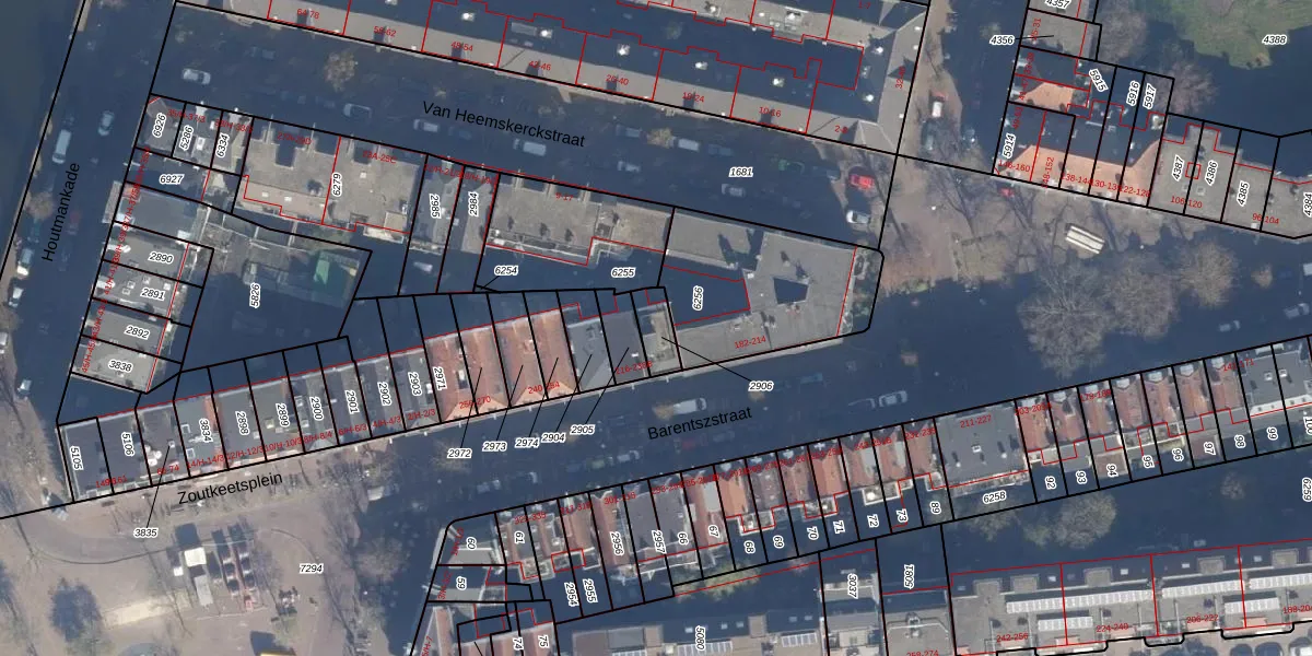 Het perceel waarop het adres ligt is ASD09-M-2906. De afkorting 'ASD09' staat voor kadastrale gemeente Amsterdam. De gemiddelde perceelgrootte in Amsterdam is 550,83 m². Dit perceel is kleiner: de perceeloppervlakte bedraagt 70 m². Het kleinste perceel in de kadastrale gemeente is 1 m² groot. De grootste perceeloppervlakte is 14,3 ha. Op het perceel zijn 4 adressen aanwezig. De laatste wijziging in het de Basisregistratie Kadaster (BRK) was op 30-11-2006.