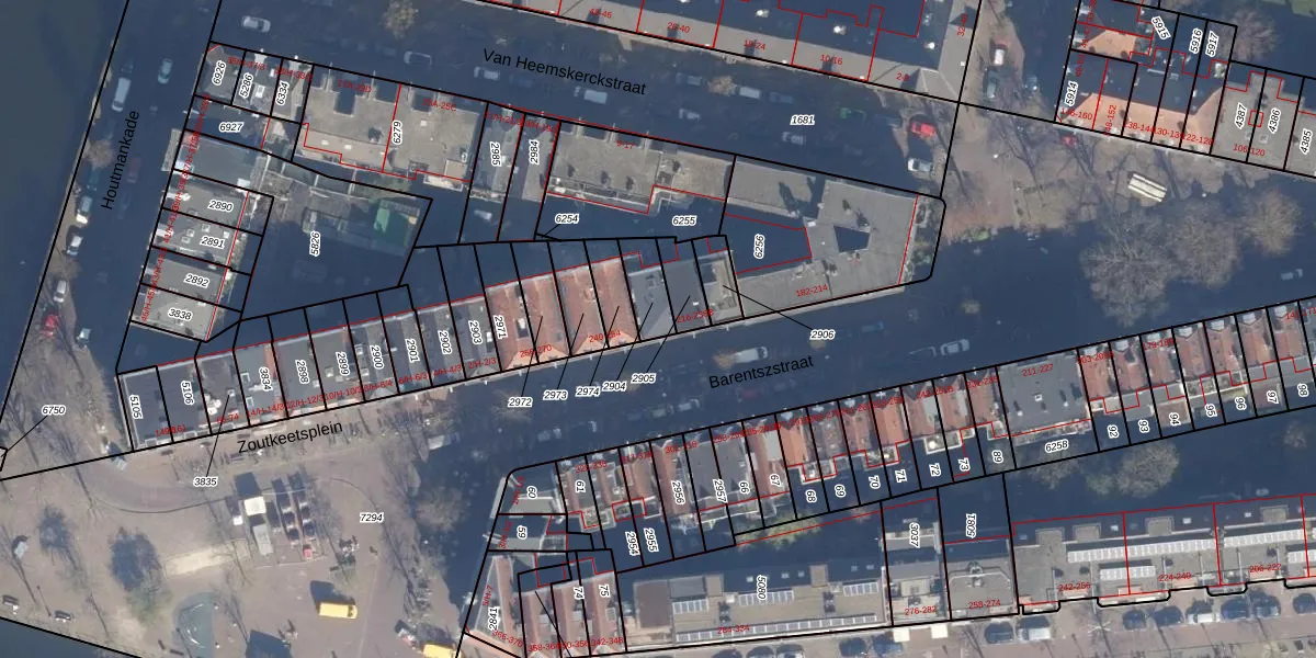 Het perceel waarop het adres ligt is ASD09-M-2904. De afkorting 'ASD09' staat voor kadastrale gemeente Amsterdam. Het perceel is 81 m² groot. Dat is kleiner dan de gemiddelde perceeloppervlakte in Amsterdam, dat op 550,83 m² ligt. Het grootste perceel in de kadastrale gemeente is 14,3 ha. Het kleinste perceel heeft een oppervlakte van 1 m². Op het perceel liggen in totaal 6 adressen. In de Basisregistratie Kadaster (BRK) werden de grenzen van het perceel geregistreerd op 30-11-2006.