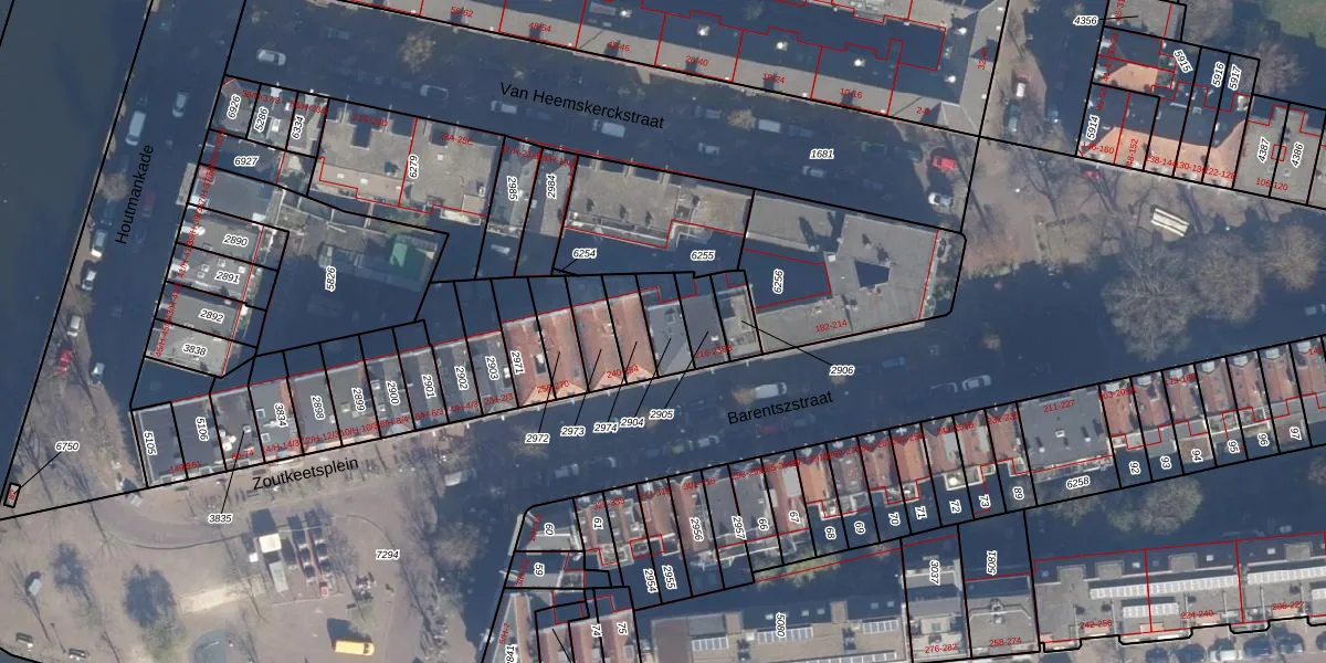 Het perceel waarop het adres ligt is ASD09-M-2904. De afkorting 'ASD09' staat voor kadastrale gemeente Amsterdam. Het perceel is kleiner dan gemiddeld in Amsterdam. Het perceel is 81 m² groot, terwijl het gemiddelde ligt op 550,83 m². Het kleinste perceel in de kadastrale gemeente is 1 m² groot. De grootste perceeloppervlakte is 14,3 ha. Er zijn 6 adressen aanwezig op het perceel. De laatste wijziging in het de Basisregistratie Kadaster (BRK) was op 30-11-2006.