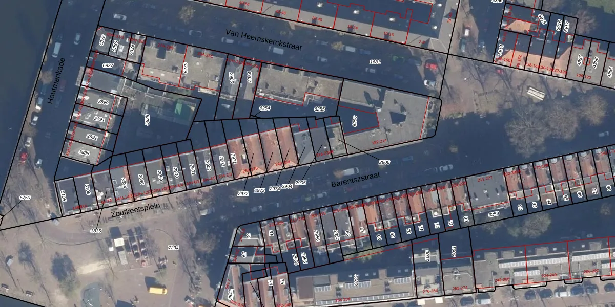 Het perceel waarop het adres ligt is ASD09-M-2904. De afkorting 'ASD09' staat voor kadastrale gemeente Amsterdam. Het perceel is kleiner dan gemiddeld in Amsterdam. Het perceel is 81 m² groot, terwijl het gemiddelde ligt op 550,83 m². Het kleinste perceel in de kadastrale gemeente is 1 m² groot. De grootste perceeloppervlakte is 14,3 ha. Er zijn 6 adressen aanwezig op het perceel. De laatste wijziging in het de Basisregistratie Kadaster (BRK) was op 30-11-2006.