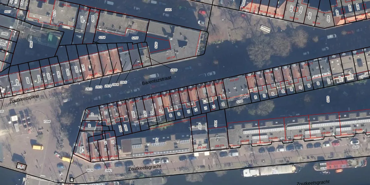 Het perceel waarop het adres ligt is ASD09-M-70. De afkorting 'ASD09' staat voor kadastrale gemeente Amsterdam. Het perceel is kleiner dan gemiddeld in Amsterdam. Het perceel is 77 m² groot, terwijl het gemiddelde ligt op 550,83 m². Het kleinste perceel in de kadastrale gemeente is 1 m² groot. De grootste perceeloppervlakte is 14,3 ha. Er zijn 4 adressen aanwezig op het perceel. De huidige grenzen van het perceel zijn digitaal in de Basisregistratie Kadaster (BRK) geregistreerd op 30-11-2006.