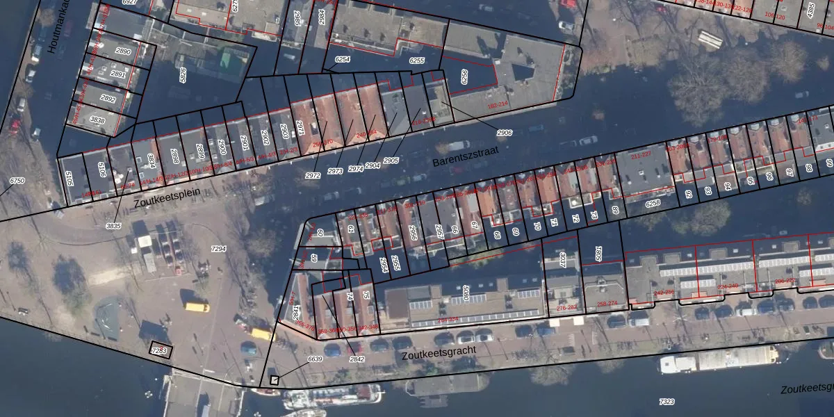 Het perceel waarop het adres ligt is ASD09-M-2956. De afkorting 'ASD09' staat voor kadastrale gemeente Amsterdam. Het perceel is kleiner dan gemiddeld in Amsterdam. Het perceel is 90 m² groot, terwijl het gemiddelde ligt op 550,83 m². De grootste perceeloppervlakte in de kadastrale gemeente is 14,3 ha. De kleinste oppervlakte bedraagt 1 m². Er zijn 5 adressen aanwezig op het perceel. De huidige grenzen van het perceel zijn digitaal in de Basisregistratie Kadaster (BRK) geregistreerd op 30-11-2006.