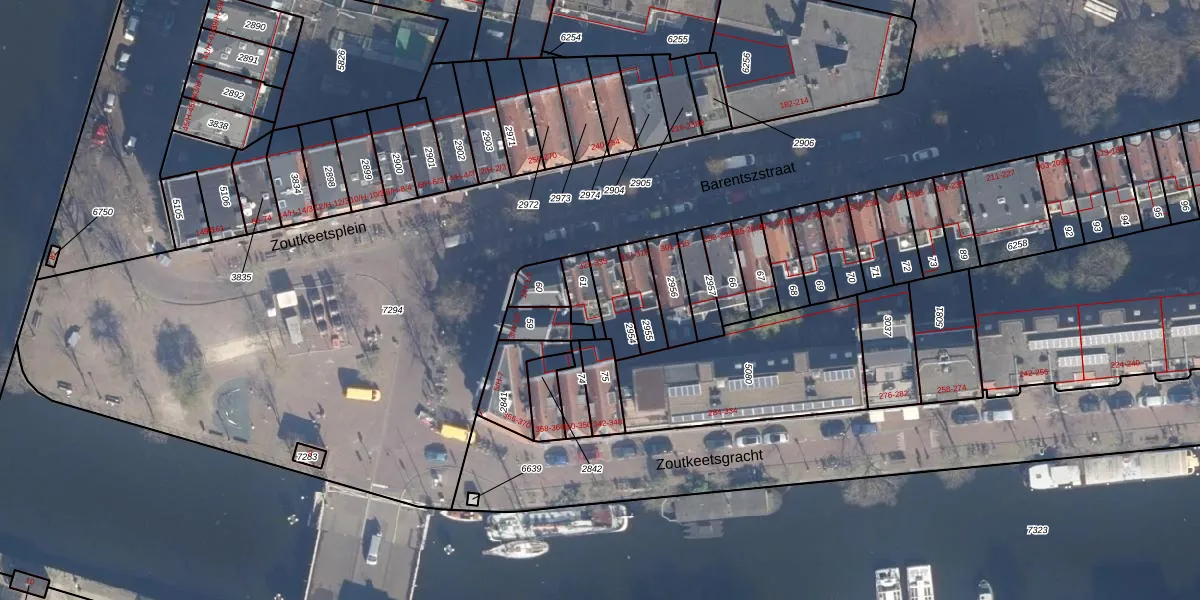 Het perceel waarop het adres ligt is ASD09-M-2954. De afkorting 'ASD09' staat voor kadastrale gemeente Amsterdam. Het perceel is 87 m² groot. Dat is kleiner dan de gemiddelde perceeloppervlakte in Amsterdam, dat op 550,83 m² ligt. De grootste perceeloppervlakte in de kadastrale gemeente is 14,3 ha. De kleinste oppervlakte bedraagt 1 m². Op het perceel zijn 3 adressen aanwezig. De huidige grenzen van het perceel zijn digitaal in de Basisregistratie Kadaster (BRK) geregistreerd op 30-11-2006.