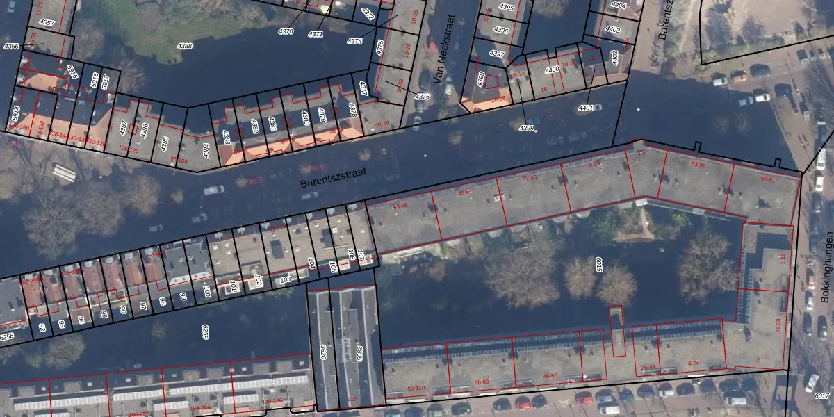Het perceel waarop Barentszstraat 63 staat heeft een oppervlakte van 5365 m². Dit is een zeer groot perceel. De perceeloppervlakte wordt geregistreerd door het Kadaster. Gedetailleerde informatie over de maten van dit perceel kunt u vinden in het rapport Kadastrale kaart met maatvoering van Barentszstraat 63.