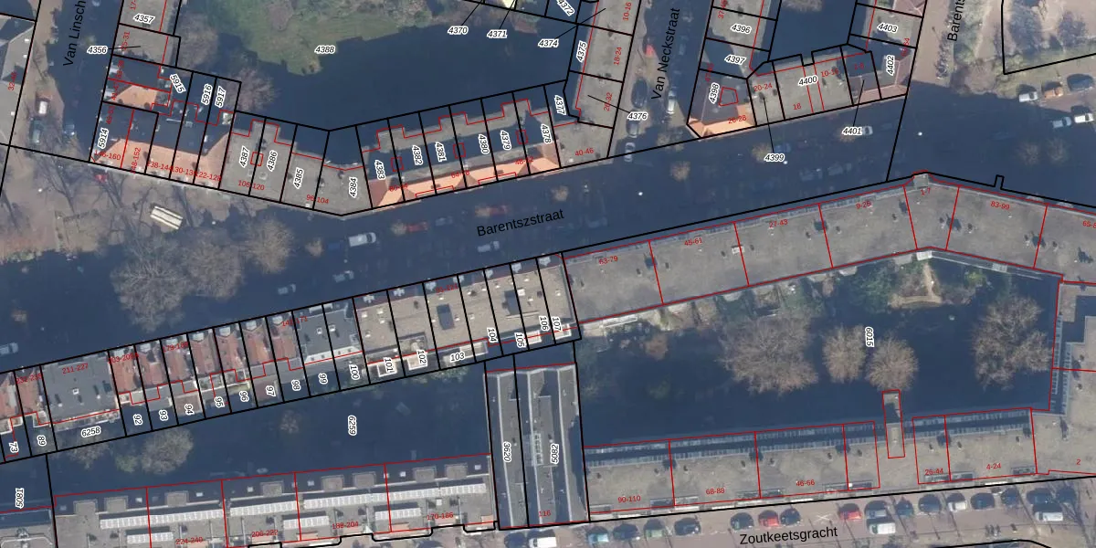 Het perceel waarop Barentszstraat 83 staat heeft een oppervlakte van 77 m². Dit is een klein perceel. De perceeloppervlakte wordt geregistreerd door het Kadaster. Gedetailleerde informatie over de maten van dit perceel kunt u vinden in het rapport Kadastrale kaart met maatvoering van Barentszstraat 83.