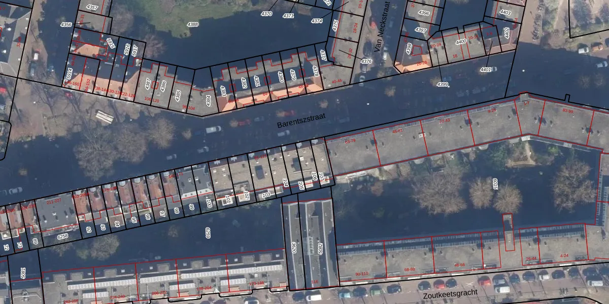 Barentszstraat 91 is gelegen op kadastraal perceel ASD09M106. Deze kadastrale aanduiding is uniek en wordt gebruikt door het Kadaster om eigendomsrechten en andere zakelijke rechten vast te leggen. Het perceel maakt onderdeel uit van de kadastrale gemeente Amsterdam.