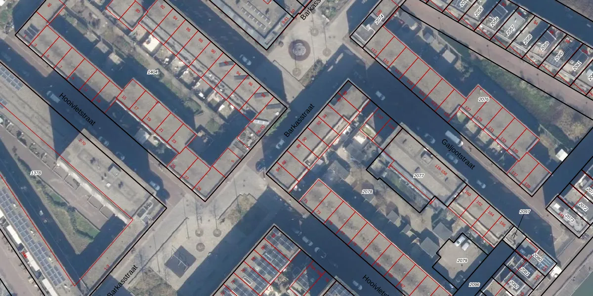 Het perceel waarop Barkasstraat 88 staat heeft een oppervlakte van 2463 m². Dit is een zeer groot perceel. De perceeloppervlakte wordt geregistreerd door het Kadaster. Gedetailleerde informatie over de maten van dit perceel kunt u vinden in het rapport Kadastrale kaart met maatvoering van Barkasstraat 88.