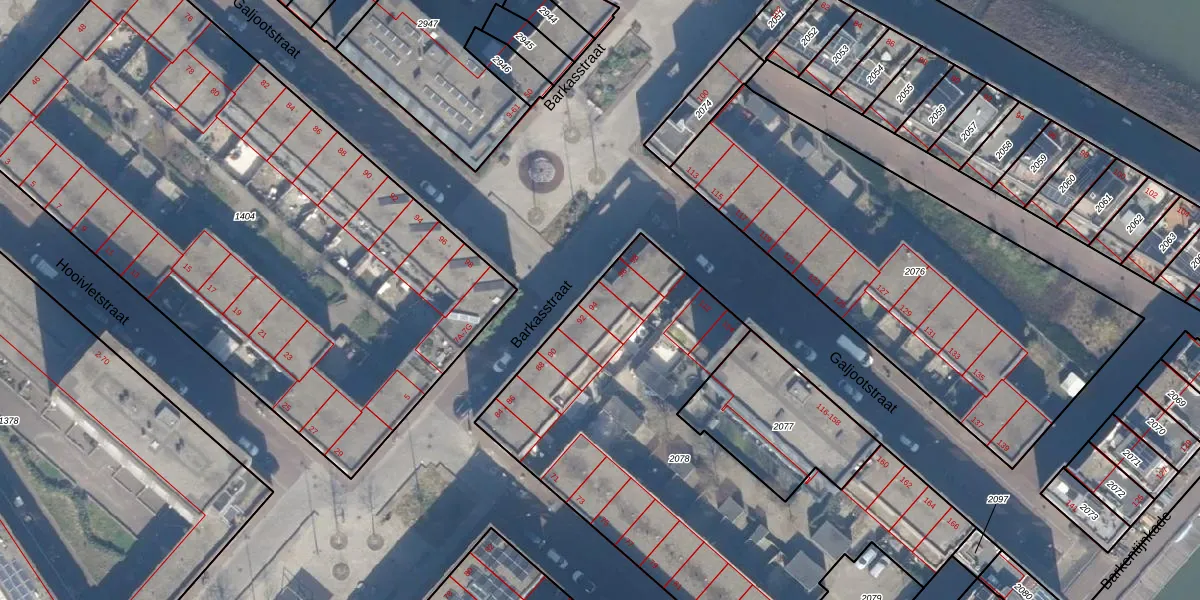Het perceel waarop Barkasstraat 94 staat heeft een oppervlakte van 2463 m². Dit is een zeer groot perceel. De perceeloppervlakte wordt geregistreerd door het Kadaster. Gedetailleerde informatie over de maten van dit perceel kunt u vinden in het rapport Kadastrale kaart met maatvoering van Barkasstraat 94.