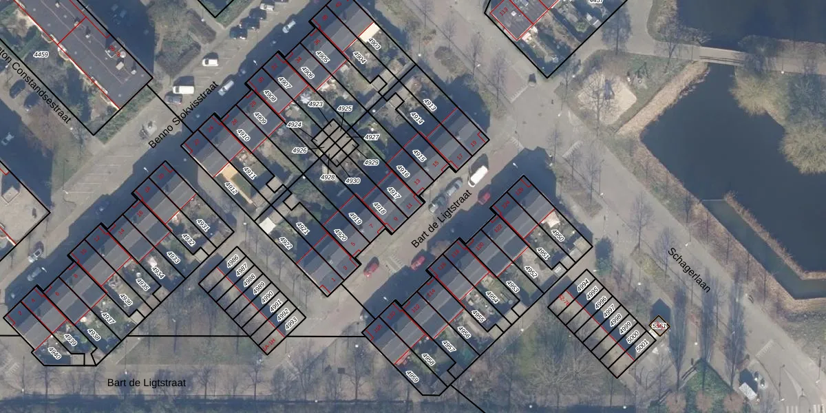 Het perceel waarop Bart de Ligtstraat 11 staat heeft een oppervlakte van 121 m². Dit is een middelgroot perceel. De perceeloppervlakte wordt geregistreerd door het Kadaster. Gedetailleerde informatie over de maten van dit perceel kunt u vinden in het rapport Kadastrale kaart met maatvoering van Bart de Ligtstraat 11.