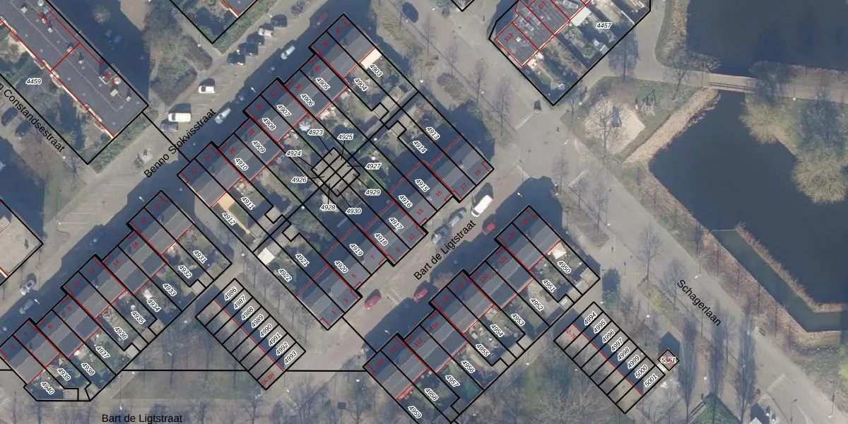 Bart de Ligtstraat 13 is gelegen op kadastraal perceel WTG02A4916. Deze kadastrale aanduiding is uniek en wordt gebruikt door het Kadaster om eigendomsrechten en andere zakelijke rechten vast te leggen. Het perceel maakt onderdeel uit van de kadastrale gemeente Watergraafsmeer.