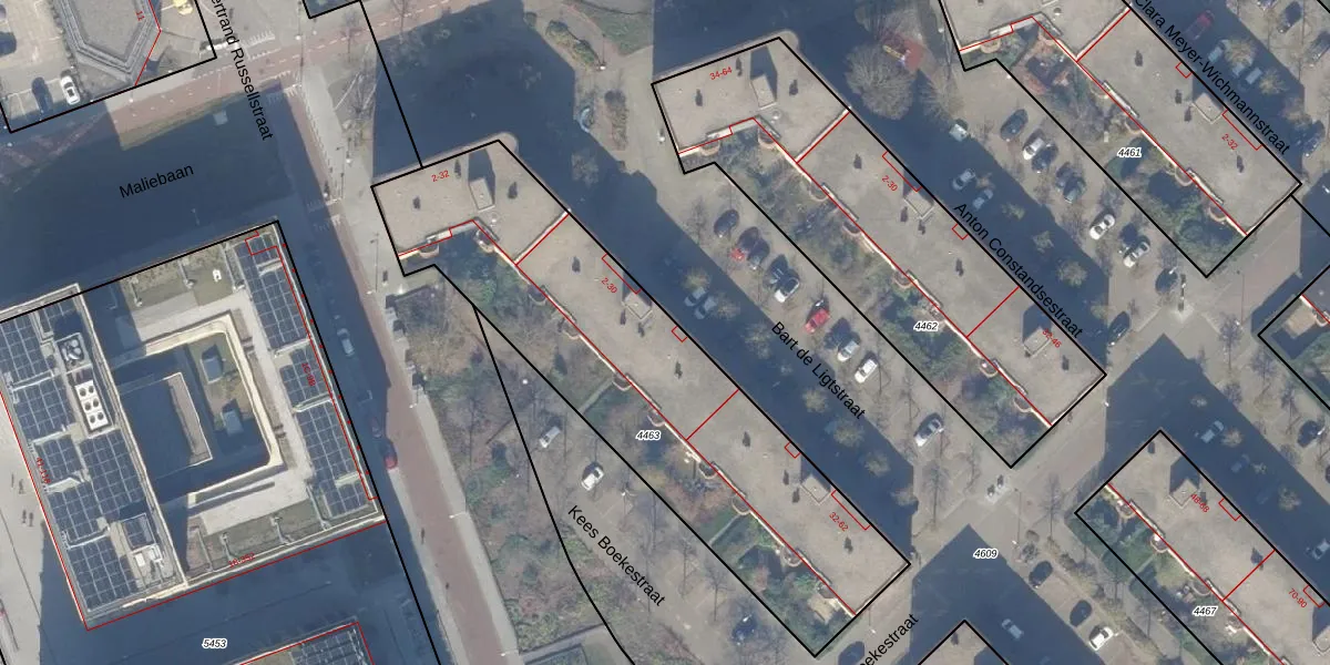 Het perceel waarop Bart de Ligtstraat 16 staat heeft een oppervlakte van 1888 m². Dit is een zeer groot perceel. De perceeloppervlakte wordt geregistreerd door het Kadaster. Gedetailleerde informatie over de maten van dit perceel kunt u vinden in het rapport Kadastrale kaart met maatvoering van Bart de Ligtstraat 16.