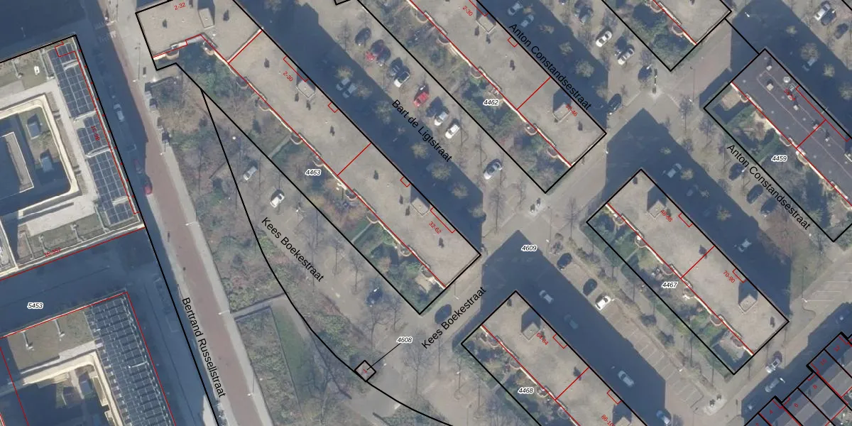 Het perceel waarop Bart de Ligtstraat 46 staat heeft een oppervlakte van 1888 m². Dit is een zeer groot perceel. De perceeloppervlakte wordt geregistreerd door het Kadaster. Gedetailleerde informatie over de maten van dit perceel kunt u vinden in het rapport Kadastrale kaart met maatvoering van Bart de Ligtstraat 46.