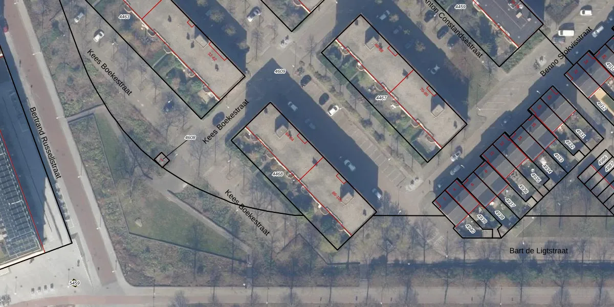 Het perceel waarop Bart de Ligtstraat 84 staat heeft een oppervlakte van 891 m². Dit is een groot perceel. De perceeloppervlakte wordt geregistreerd door het Kadaster. Gedetailleerde informatie over de maten van dit perceel kunt u vinden in het rapport Kadastrale kaart met maatvoering van Bart de Ligtstraat 84.