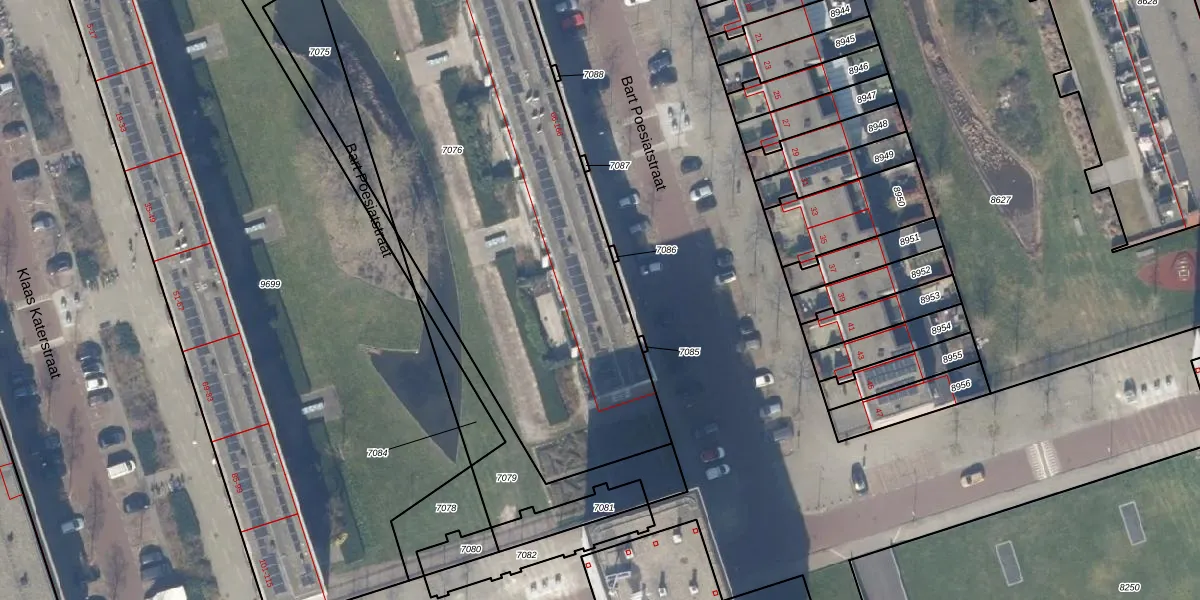 Bart Poesiatstraat 148 is gelegen op kadastraal perceel STN02E7076. Deze kadastrale aanduiding is uniek en wordt gebruikt door het Kadaster om eigendomsrechten en andere zakelijke rechten vast te leggen. Het perceel maakt onderdeel uit van de kadastrale gemeente Sloten Noord-Holland.