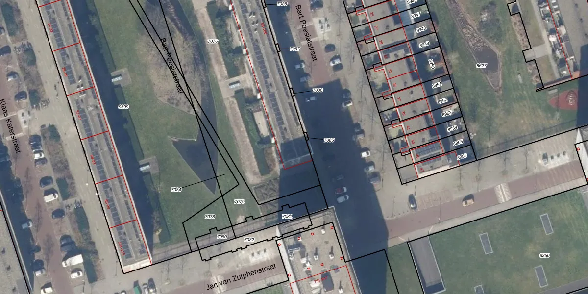 Bart Poesiatstraat 160 is gelegen op kadastraal perceel STN02E7076. Deze kadastrale aanduiding is uniek en wordt gebruikt door het Kadaster om eigendomsrechten en andere zakelijke rechten vast te leggen. Het perceel maakt onderdeel uit van de kadastrale gemeente Sloten Noord-Holland.