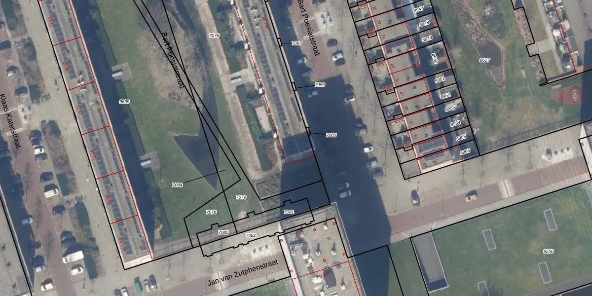 Bart Poesiatstraat 162 is gelegen op kadastraal perceel STN02E7076. Deze kadastrale aanduiding is uniek en wordt gebruikt door het Kadaster om eigendomsrechten en andere zakelijke rechten vast te leggen. Het perceel maakt onderdeel uit van de kadastrale gemeente Sloten Noord-Holland.