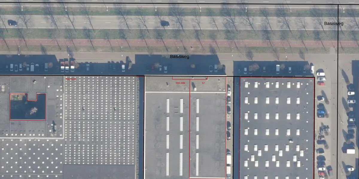 Het perceel waarop Basisweg 59-B staat heeft een oppervlakte van 6202 m². Dit is een zeer groot perceel. De perceeloppervlakte wordt geregistreerd door het Kadaster. Gedetailleerde informatie over de maten van dit perceel kunt u vinden in het rapport Kadastrale kaart met maatvoering van Basisweg 59-B.