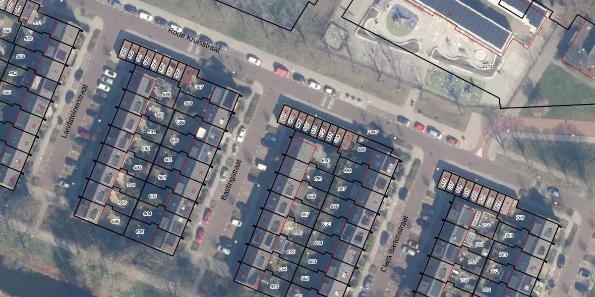 Gebruik de zoekbalk of klik op een perceel voor informatie over de adressen binnen dit perceel.