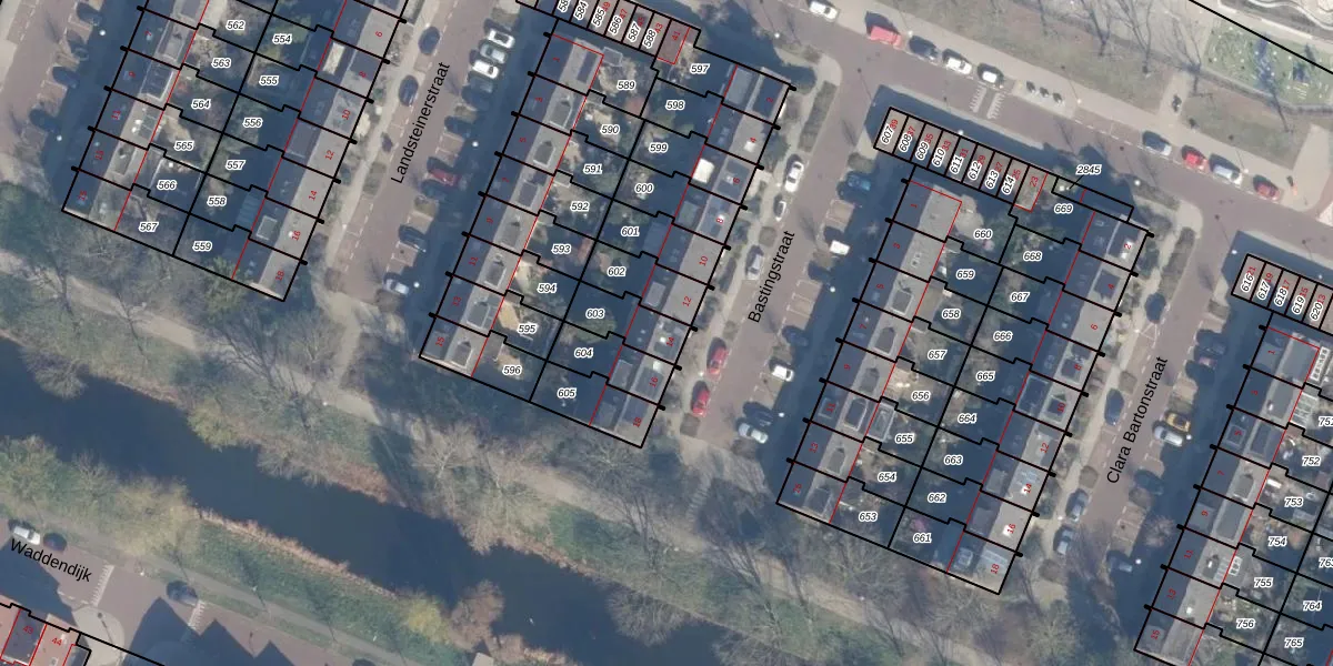 Gebruik de zoekbalk of klik op een perceel voor informatie over de adressen binnen dit perceel.