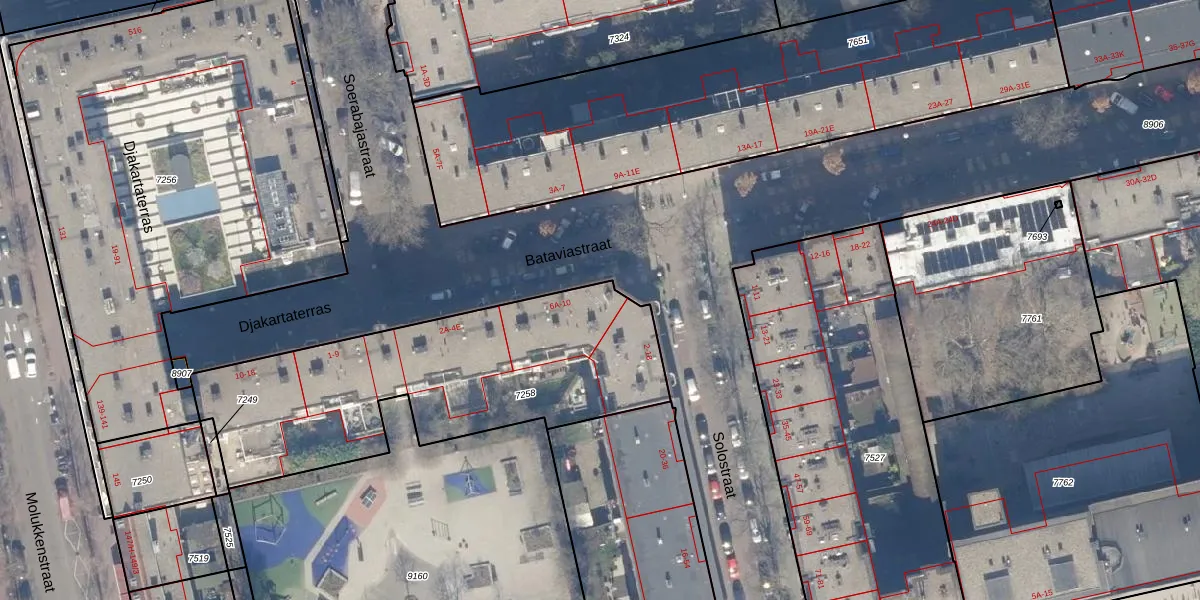 Het perceel waarop het adres ligt is ASD19-W-7258. De afkorting 'ASD19' staat voor kadastrale gemeente Amsterdam. Het perceel is kleiner dan gemiddeld in Amsterdam. Het perceel is 1498 m² groot, terwijl het gemiddelde ligt op 1563,05 m². De grootste perceeloppervlakte in de kadastrale gemeente is 17,9 ha. De kleinste oppervlakte bedraagt 0 m². Op het perceel liggen in totaal 45 adressen. In de Basisregistratie Kadaster (BRK) werden de grenzen van het perceel geregistreerd op 06-11-2006.