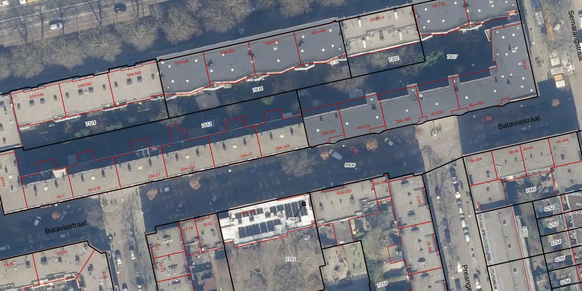 Het perceel waarop Bataviastraat 31-A staat heeft een oppervlakte van 2168 m². Dit is een zeer groot perceel. De perceeloppervlakte wordt geregistreerd door het Kadaster. Gedetailleerde informatie over de maten van dit perceel kunt u vinden in het rapport Kadastrale kaart met maatvoering van Bataviastraat 31-A.