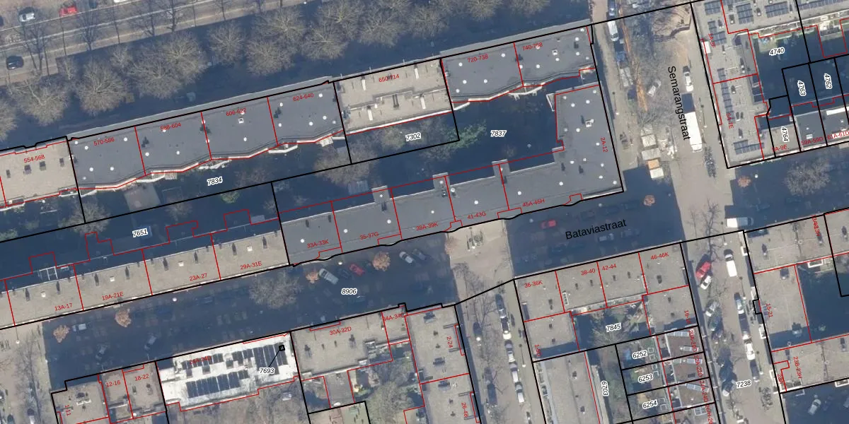 Het perceel waarop Bataviastraat 39-K staat heeft een oppervlakte van 2334 m². Dit is een zeer groot perceel. De perceeloppervlakte wordt geregistreerd door het Kadaster. Gedetailleerde informatie over de maten van dit perceel kunt u vinden in het rapport Kadastrale kaart met maatvoering van Bataviastraat 39-K.