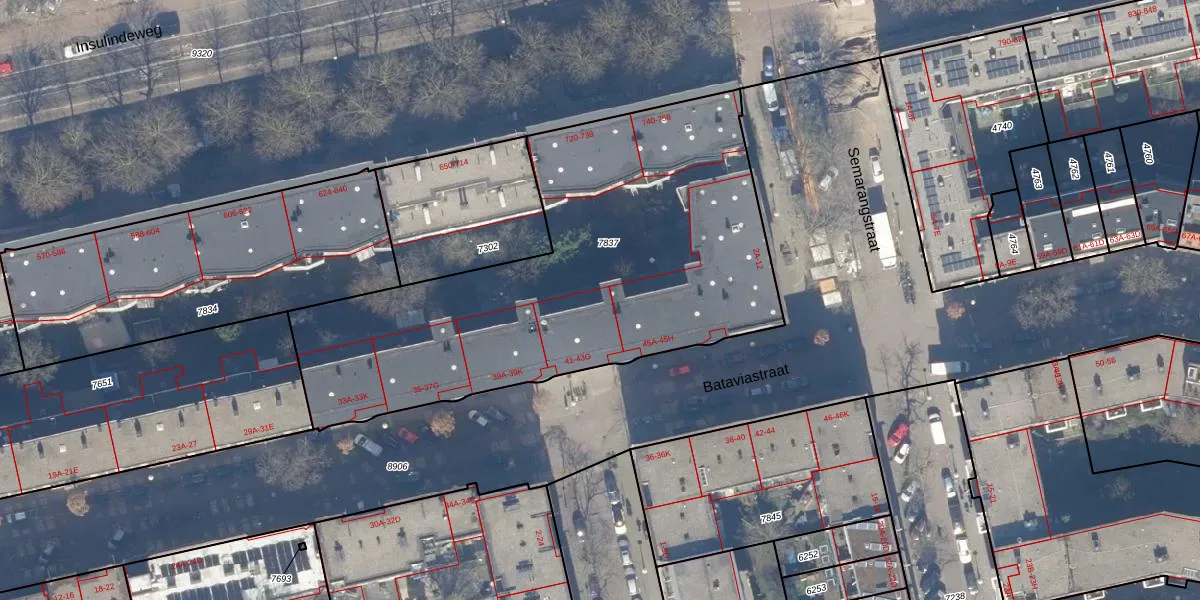 Bataviastraat 43-A is gelegen op kadastraal perceel ASD19W7837. Deze kadastrale aanduiding is uniek en wordt gebruikt door het Kadaster om eigendomsrechten en andere zakelijke rechten vast te leggen. Het perceel maakt onderdeel uit van de kadastrale gemeente Amsterdam.