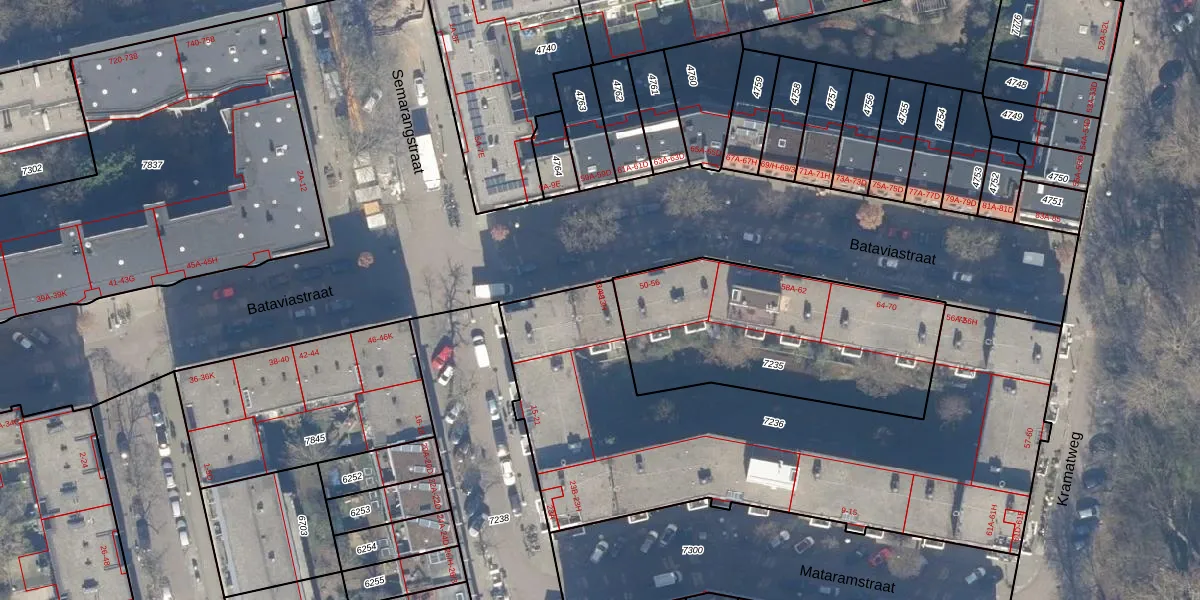Bataviastraat 48 is gelegen op kadastraal perceel ASD19W7236. Deze kadastrale aanduiding is uniek en wordt gebruikt door het Kadaster om eigendomsrechten en andere zakelijke rechten vast te leggen. Het perceel maakt onderdeel uit van de kadastrale gemeente Amsterdam.