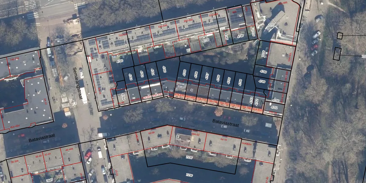 Het perceel waarop Bataviastraat 67-C staat heeft een oppervlakte van 124 m². Dit is een middelgroot perceel. De perceeloppervlakte wordt geregistreerd door het Kadaster. Gedetailleerde informatie over de maten van dit perceel kunt u vinden in het rapport Kadastrale kaart met maatvoering van Bataviastraat 67-C.