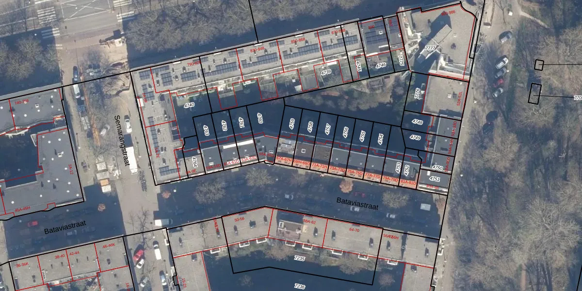 Het perceel waarop Bataviastraat 67-E staat heeft een oppervlakte van 124 m². Dit is een middelgroot perceel. De perceeloppervlakte wordt geregistreerd door het Kadaster. Gedetailleerde informatie over de maten van dit perceel kunt u vinden in het rapport Kadastrale kaart met maatvoering van Bataviastraat 67-E.