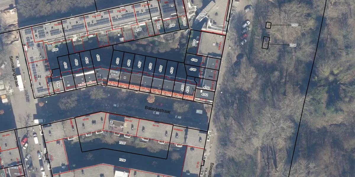 Het perceel waarop Bataviastraat 79-C staat heeft een oppervlakte van 116 m². Dit is een middelgroot perceel. De perceeloppervlakte wordt geregistreerd door het Kadaster. Gedetailleerde informatie over de maten van dit perceel kunt u vinden in het rapport Kadastrale kaart met maatvoering van Bataviastraat 79-C.