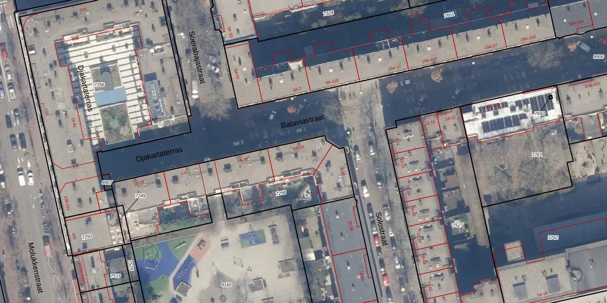 Bataviastraat 8-B is gelegen op kadastraal perceel ASD19W7258. Deze kadastrale aanduiding is uniek en wordt gebruikt door het Kadaster om eigendomsrechten en andere zakelijke rechten vast te leggen. Het perceel maakt onderdeel uit van de kadastrale gemeente Amsterdam.