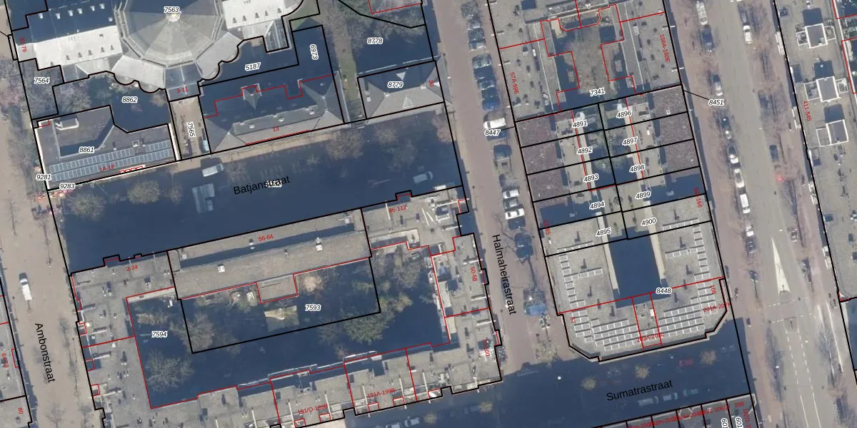 Het perceel waarop Batjanstraat 104 staat heeft een oppervlakte van 3303 m². Dit is een zeer groot perceel. De perceeloppervlakte wordt geregistreerd door het Kadaster. Gedetailleerde informatie over de maten van dit perceel kunt u vinden in het rapport Kadastrale kaart met maatvoering van Batjanstraat 104.
