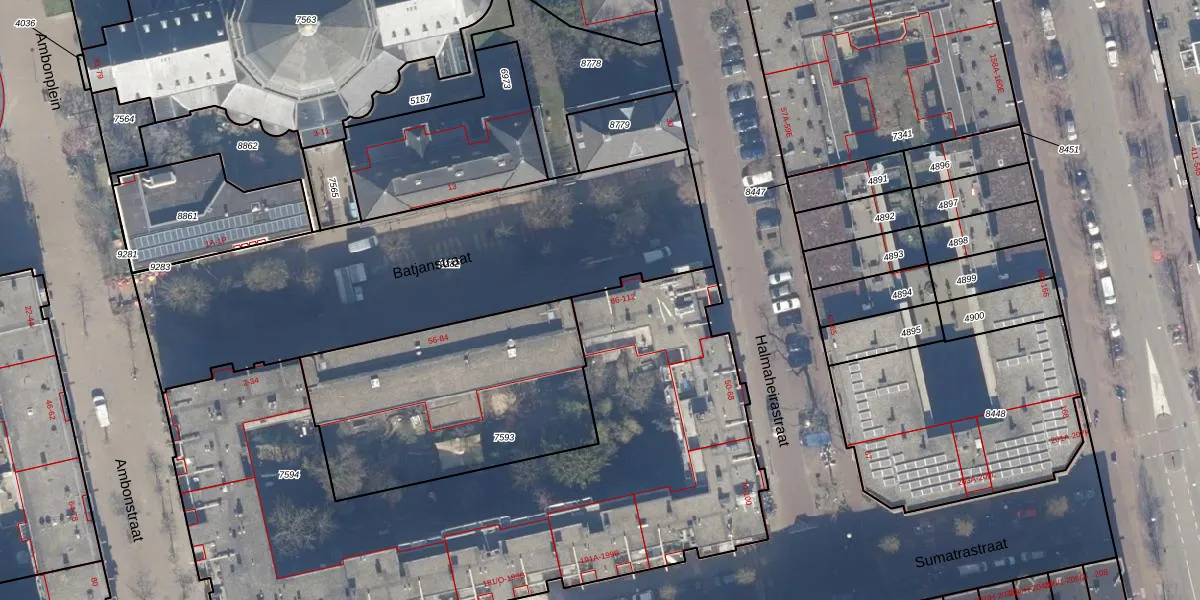 Het perceel waarop Batjanstraat 108 staat heeft een oppervlakte van 3303 m². Dit is een zeer groot perceel. De perceeloppervlakte wordt geregistreerd door het Kadaster. Gedetailleerde informatie over de maten van dit perceel kunt u vinden in het rapport Kadastrale kaart met maatvoering van Batjanstraat 108.