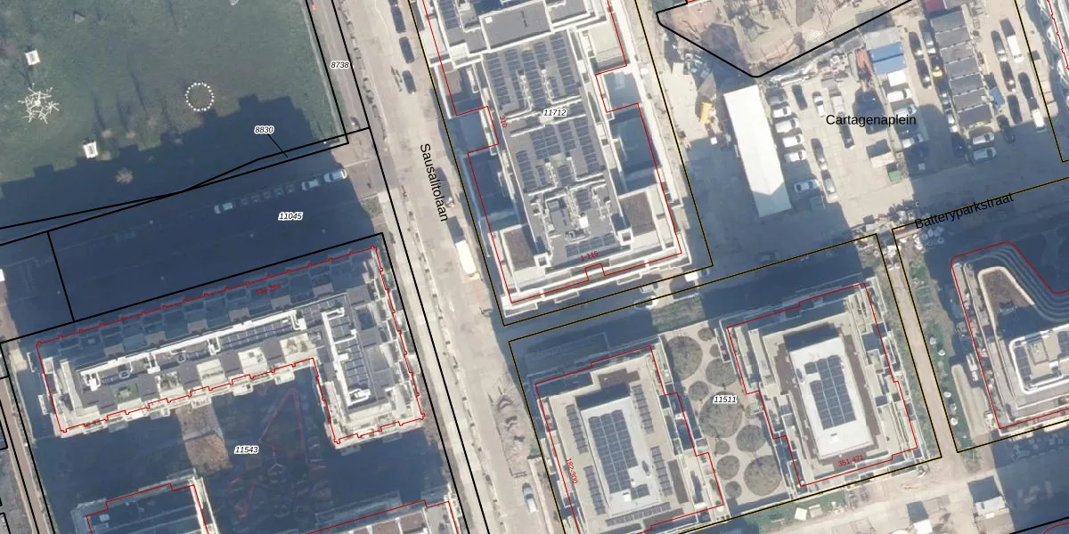 Het perceel waarop Batteryparkstraat 1 staat heeft een oppervlakte van 2907 m². Dit is een zeer groot perceel. De perceeloppervlakte wordt geregistreerd door het Kadaster. Gedetailleerde informatie over de maten van dit perceel kunt u vinden in het rapport Kadastrale kaart met maatvoering van Batteryparkstraat 1.