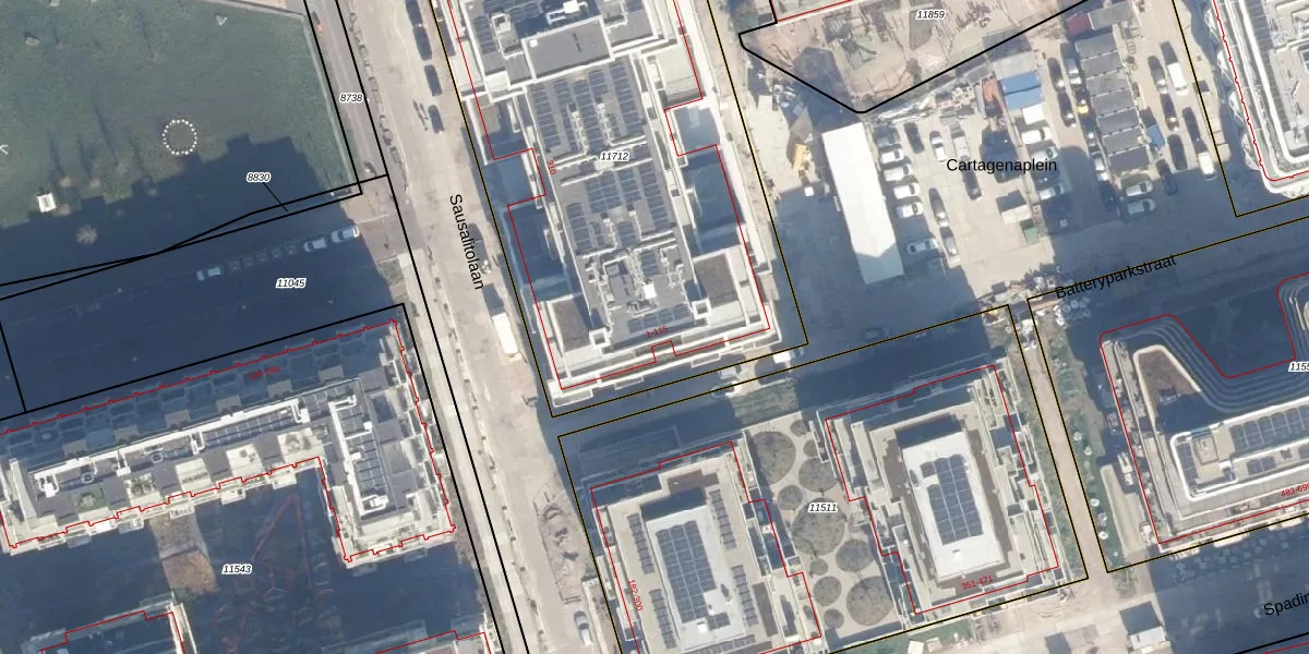Het perceel waarop Batteryparkstraat 11 staat heeft een oppervlakte van 2907 m². Dit is een zeer groot perceel. De perceeloppervlakte wordt geregistreerd door het Kadaster. Gedetailleerde informatie over de maten van dit perceel kunt u vinden in het rapport Kadastrale kaart met maatvoering van Batteryparkstraat 11.