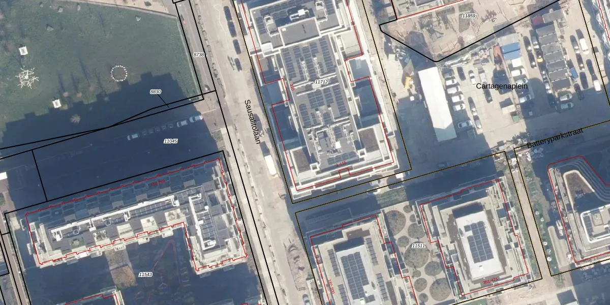 Het perceel waarop Batteryparkstraat 55 staat heeft een oppervlakte van 2907 m². Dit is een zeer groot perceel. De perceeloppervlakte wordt geregistreerd door het Kadaster. Gedetailleerde informatie over de maten van dit perceel kunt u vinden in het rapport Kadastrale kaart met maatvoering van Batteryparkstraat 55.