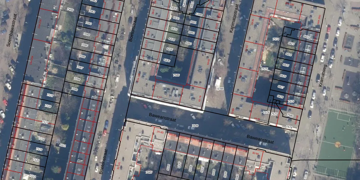 Het perceel waarop Baweanstraat 17 staat heeft een oppervlakte van 1041 m². Dit is een zeer groot perceel. De perceeloppervlakte wordt geregistreerd door het Kadaster. Gedetailleerde informatie over de maten van dit perceel kunt u vinden in het rapport Kadastrale kaart met maatvoering van Baweanstraat 17.