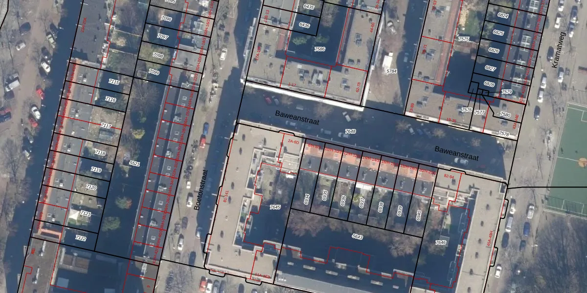 Het perceel waarop Baweanstraat 2-C staat heeft een oppervlakte van 1275 m². Dit is een zeer groot perceel. De perceeloppervlakte wordt geregistreerd door het Kadaster. Gedetailleerde informatie over de maten van dit perceel kunt u vinden in het rapport Kadastrale kaart met maatvoering van Baweanstraat 2-C.