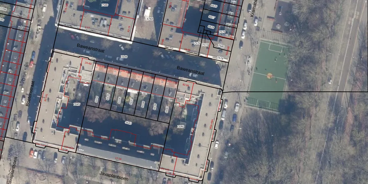 Baweanstraat 90 is gelegen op kadastraal perceel ASD19W7646. Deze kadastrale aanduiding is uniek en wordt gebruikt door het Kadaster om eigendomsrechten en andere zakelijke rechten vast te leggen. Het perceel maakt onderdeel uit van de kadastrale gemeente Amsterdam.