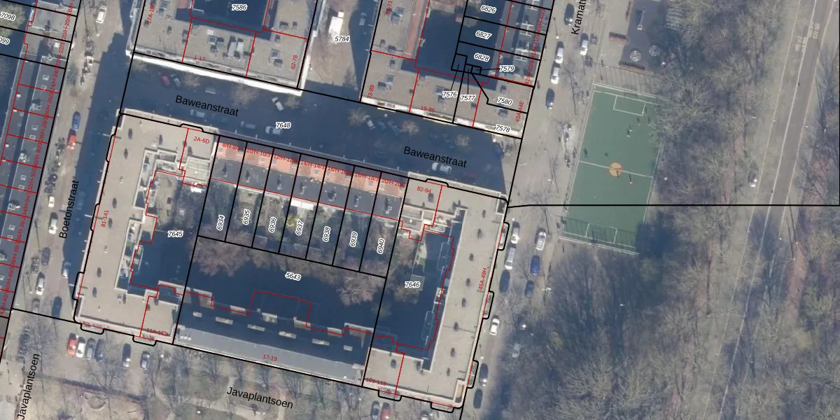 Baweanstraat 92 is gelegen op kadastraal perceel ASD19W7646. Deze kadastrale aanduiding is uniek en wordt gebruikt door het Kadaster om eigendomsrechten en andere zakelijke rechten vast te leggen. Het perceel maakt onderdeel uit van de kadastrale gemeente Amsterdam.