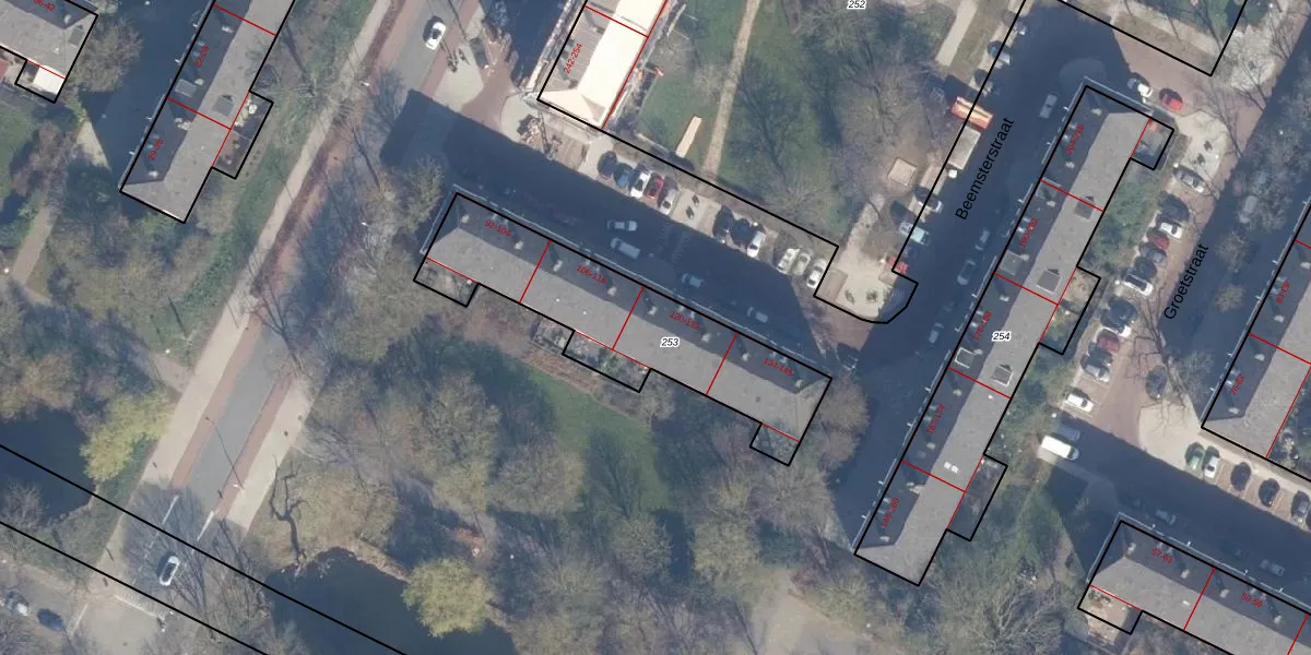 Het perceel waarop Beemsterstraat 122 staat heeft een oppervlakte van 811 m². Dit is een groot perceel. De perceeloppervlakte wordt geregistreerd door het Kadaster. Gedetailleerde informatie over de maten van dit perceel kunt u vinden in het rapport Kadastrale kaart met maatvoering van Beemsterstraat 122.