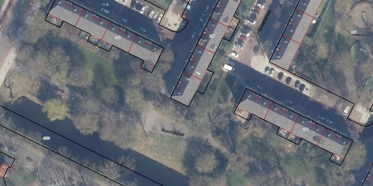 Het perceel waarop het adres ligt is ASD31-AL-254. De afkorting 'ASD31' staat voor kadastrale gemeente Amsterdam. De gemiddelde perceelgrootte in Amsterdam is 1159,38 m². Dit perceel is kleiner: de perceeloppervlakte bedraagt 1000 m². Het kleinste perceel in de kadastrale gemeente is 0 m² groot. De grootste perceeloppervlakte is 35,6 ha. Op het perceel zijn 35 adressen aanwezig. De huidige grenzen van het perceel zijn digitaal in de Basisregistratie Kadaster (BRK) geregistreerd op 02-12-2010.