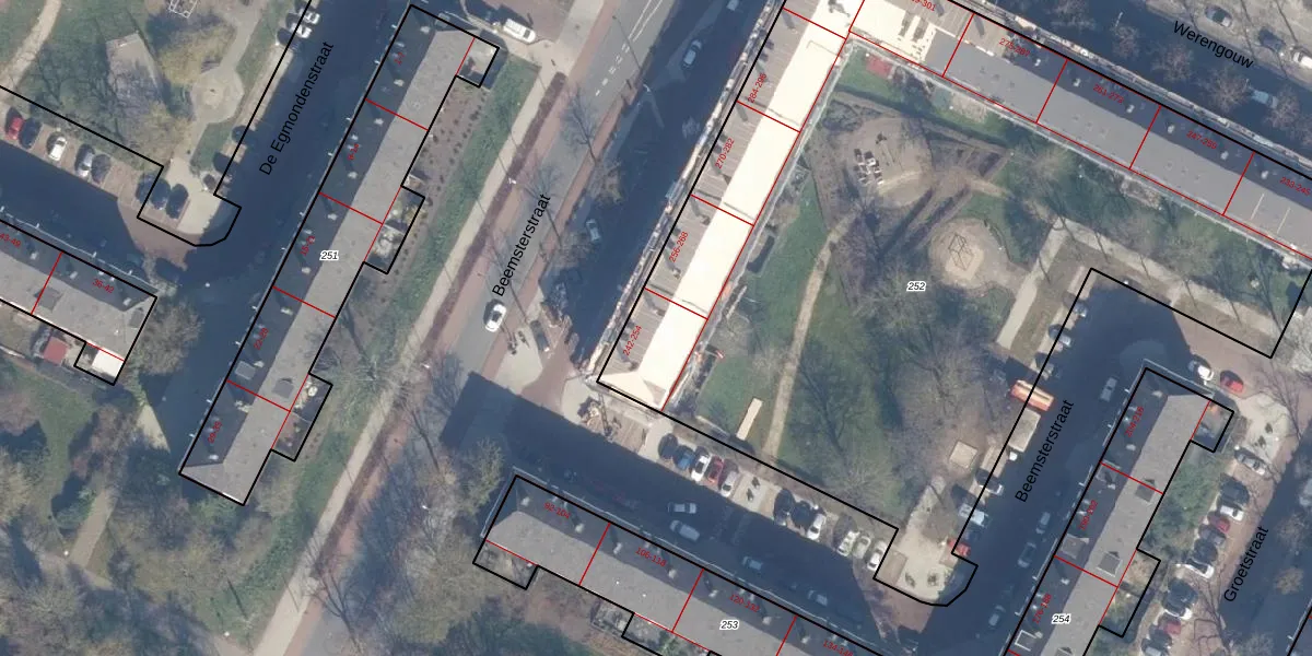 Beemsterstraat 252 is gelegen op kadastraal perceel ASD31AL252. Deze kadastrale aanduiding is uniek en wordt gebruikt door het Kadaster om eigendomsrechten en andere zakelijke rechten vast te leggen. Het perceel maakt onderdeel uit van de kadastrale gemeente Amsterdam.
