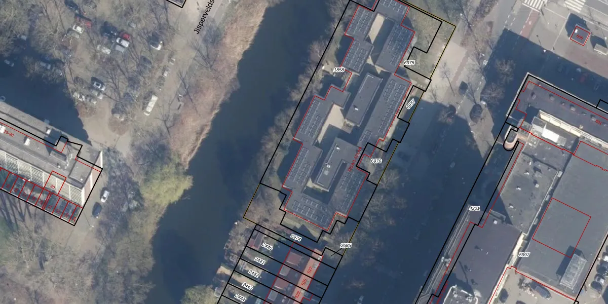 Het adres is gelegen op perceel 1858 in de sectie AL en de kadastrale gemeente Amsterdam. De kadastrale aanduiding is aldus ASD31-AL-1858. De oppervlakte van het perceel is 2365 m². Dat is groter dan gemiddeld in Amsterdam, waar de gemiddelde perceeloppervlakte op 1159,38 m² ligt. De grootste perceeloppervlakte in de kadastrale gemeente is 35,6 ha. De kleinste oppervlakte bedraagt 0 m². Op het perceel liggen in totaal 27 adressen. De huidige grenzen van het perceel zijn digitaal in de Basisregistratie Kadaster (BRK) geregistreerd op 24-05-2022.